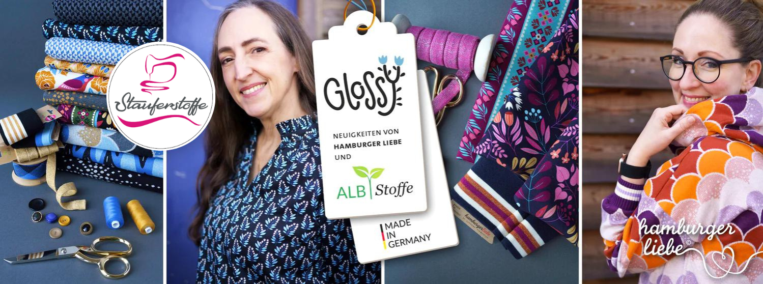 Wirf einen Blick auf die kleine und edle, limitierte Hamburger Liebe GLOSSY Collection mit wunderschönen und kuschelweichen Glitzer Jacquards mit Soft-Touch Lurex, edlen und glamourösen GOTS zertifizierten Digital Prints und perfekt kombinierbaren CUFF & STRIPE & CORD ME‘s für grenzenlose Kreativität.
