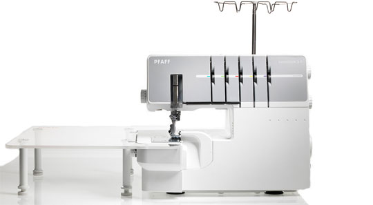 23 Sticharten; Differentialtransport; Farbig markierten Einfädelwege; Stoffauffangbehälter; Anschiebetisch; Nähfuß-Extrahöhe; Fadenabschneider