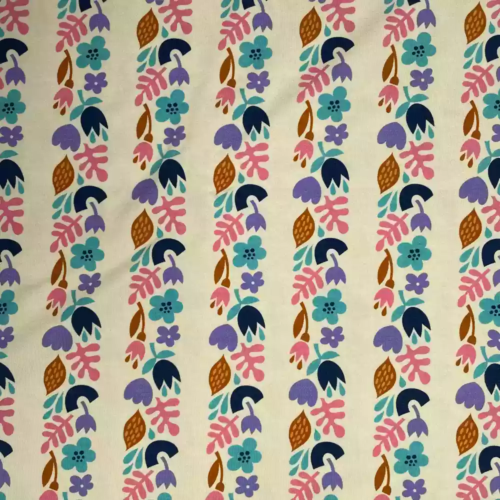 Dieser weiche, leicht elastische Jacquard-Jersey in einer Wooltouch-Qualität ist ein echter Hingucker! Der Baumwolljersey ist ideal für Shirts, Kinderbekleidung, Kleider, Pumphosen, Accessoires, Loop, Schal, Beanie, Halstücher, Mützen, Röcke und vieles mehr.