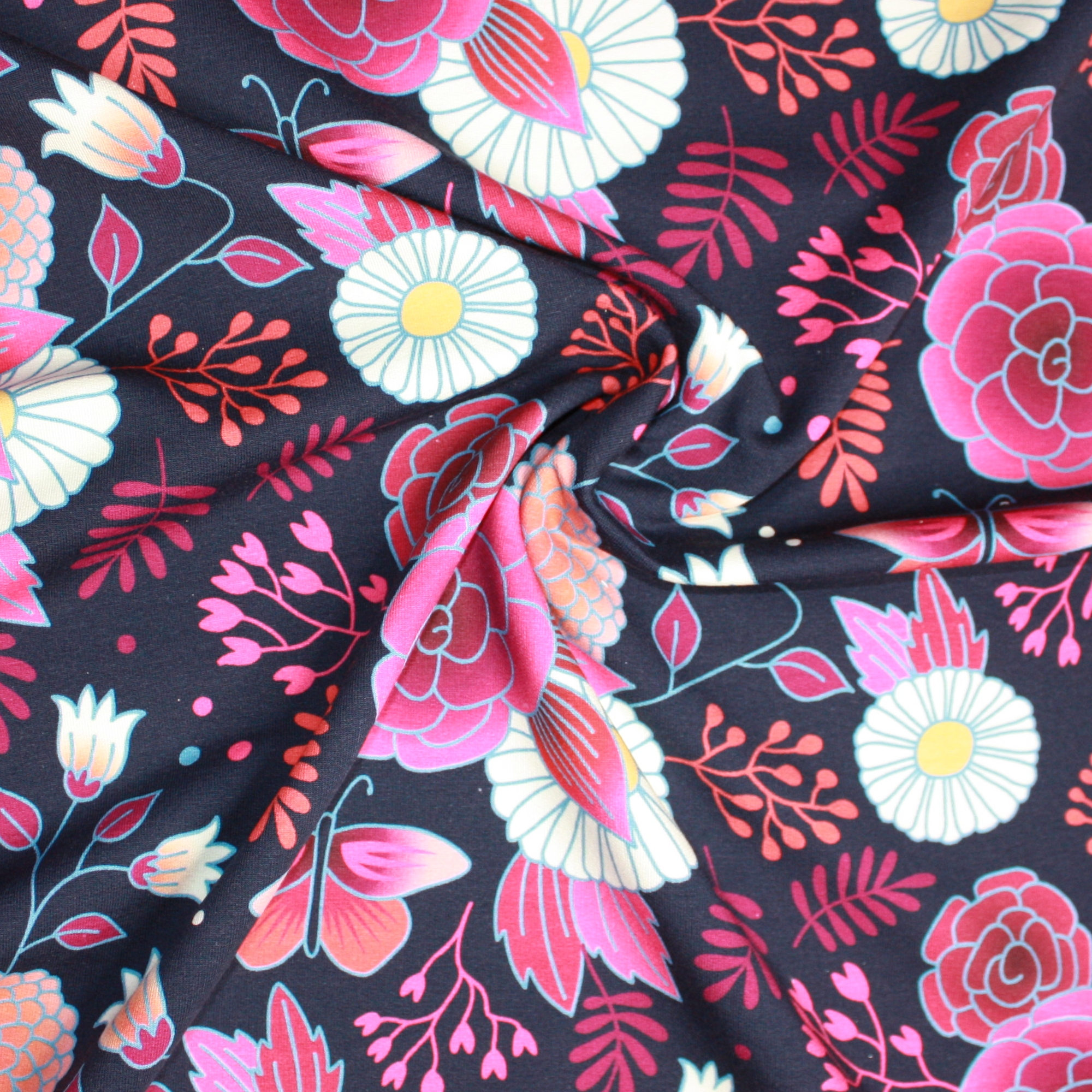 Produktinformationen "Albstoffe Sommersweat SWEET HOME - Gardeners Delight navy multicolor"