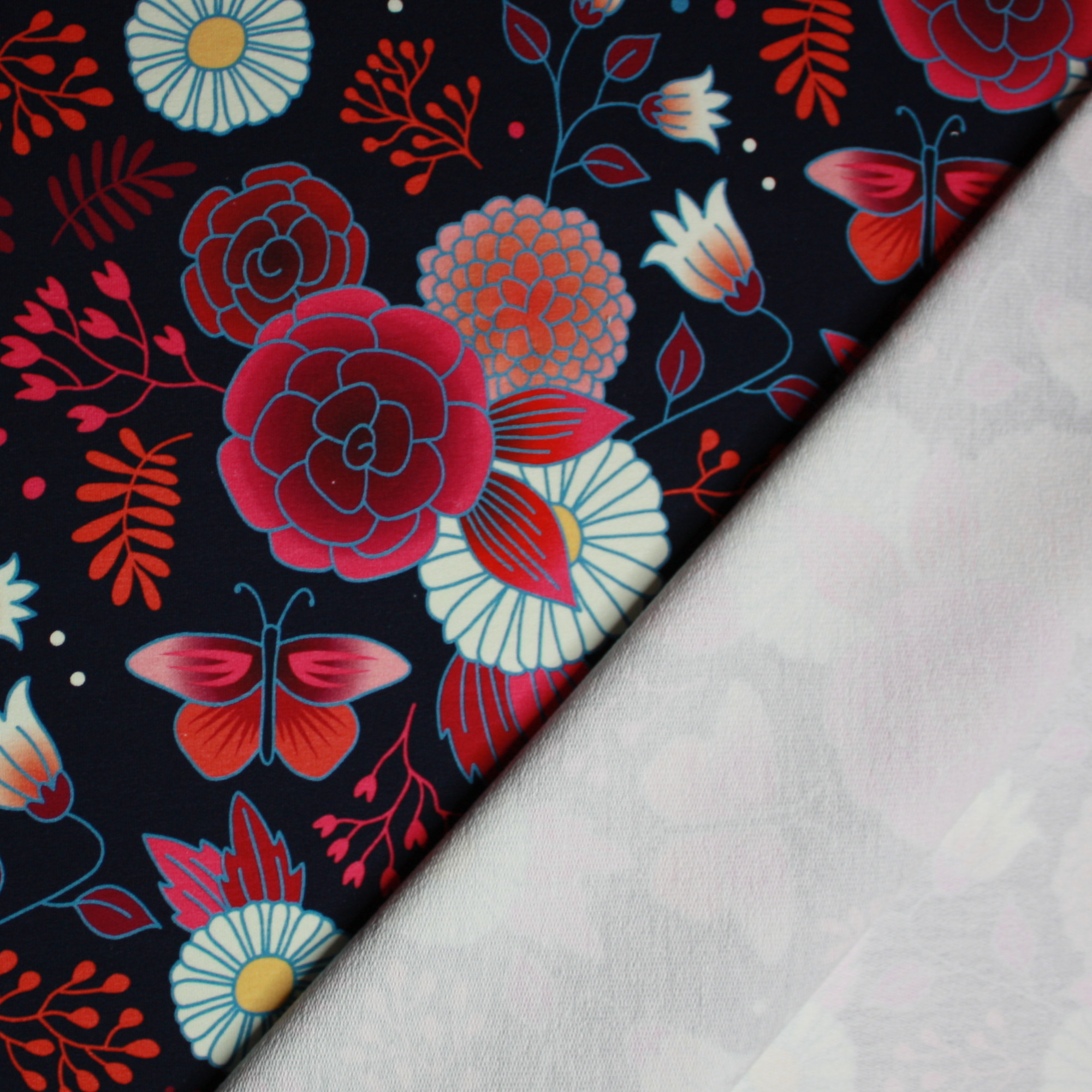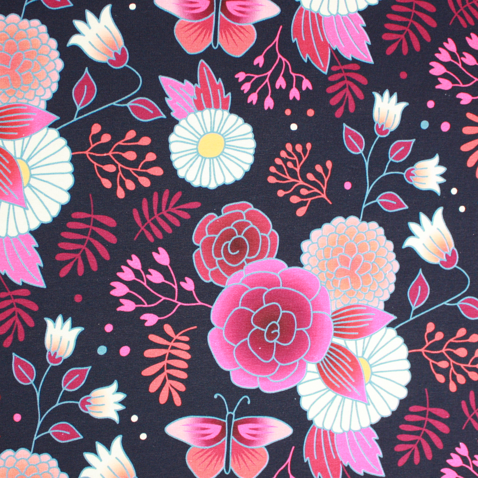 Albstoffe Sommersweat SWEET HOME - Gardeners Delight navy multicolor