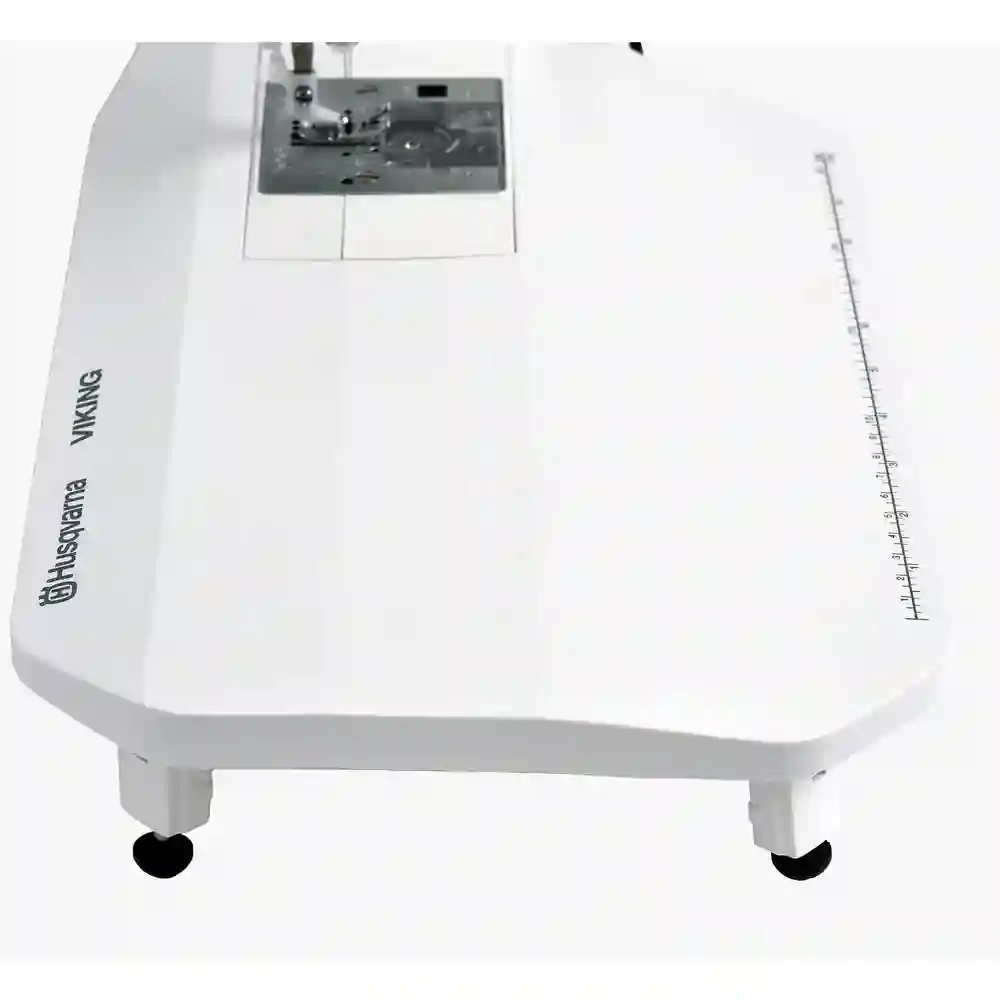 Dieser robuste Verlängerungstisch hat verstellbare Beine und ermöglicht es Ihnen, den freien Arm in ein verlängertes flaches Bett umzuwandeln, um große Projekte, insbesondere Quilts, problemlos zu unterstützen. Dieser Verlängerungstisch ist mit einem integrierten Lineal ausgestattet, das auf der Vorderseite markiert ist und ein schnelles Abmessen während des Nähens ermöglicht. Die höhenverstellbaren, klappbaren Beine sorgen für eine stabile Oberfläche, die sich zudem leicht verstauen lässt.