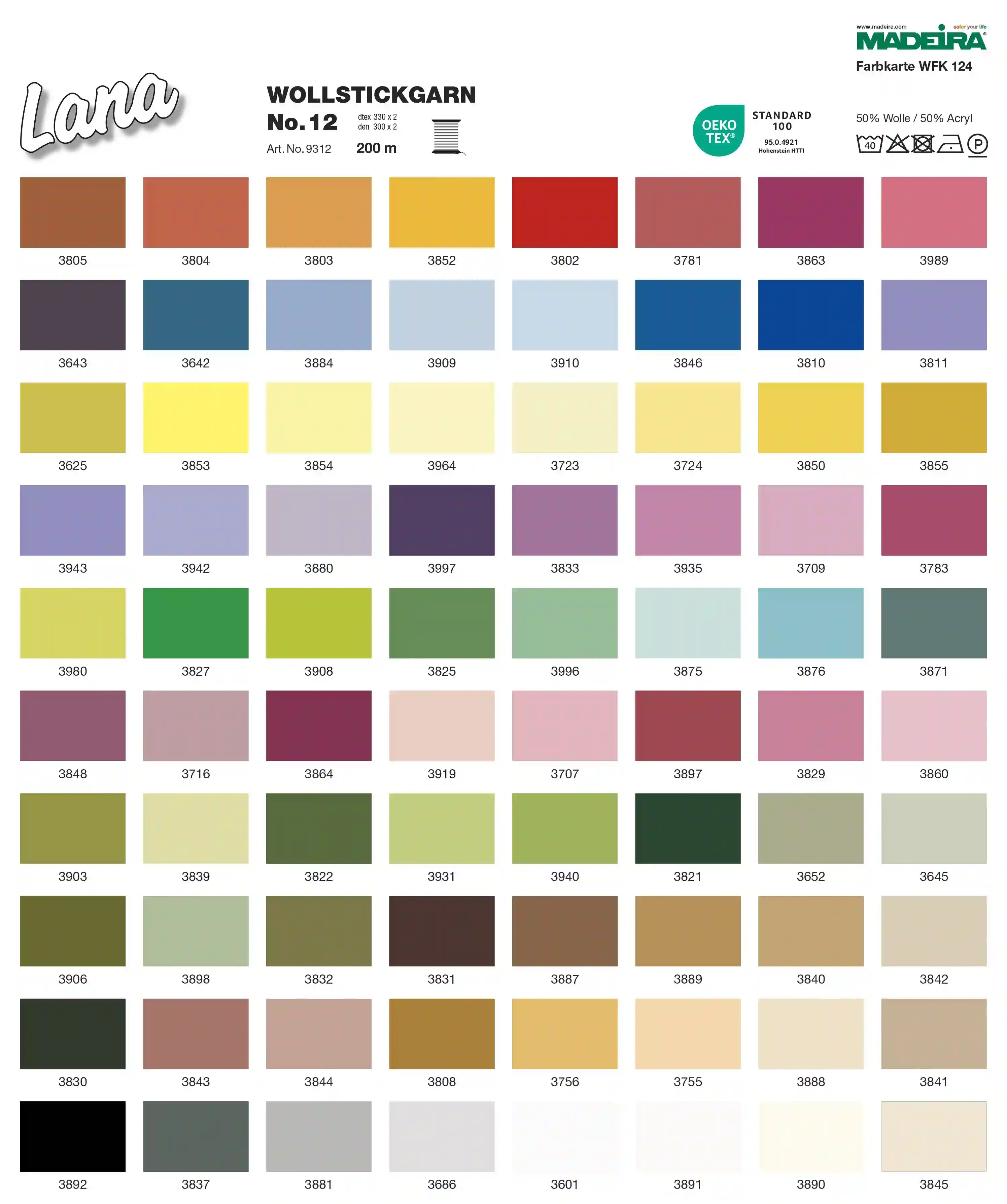 Produktinformationen "Madeira Stickgarn Lana 12 - 200m Spule 80 Farben "