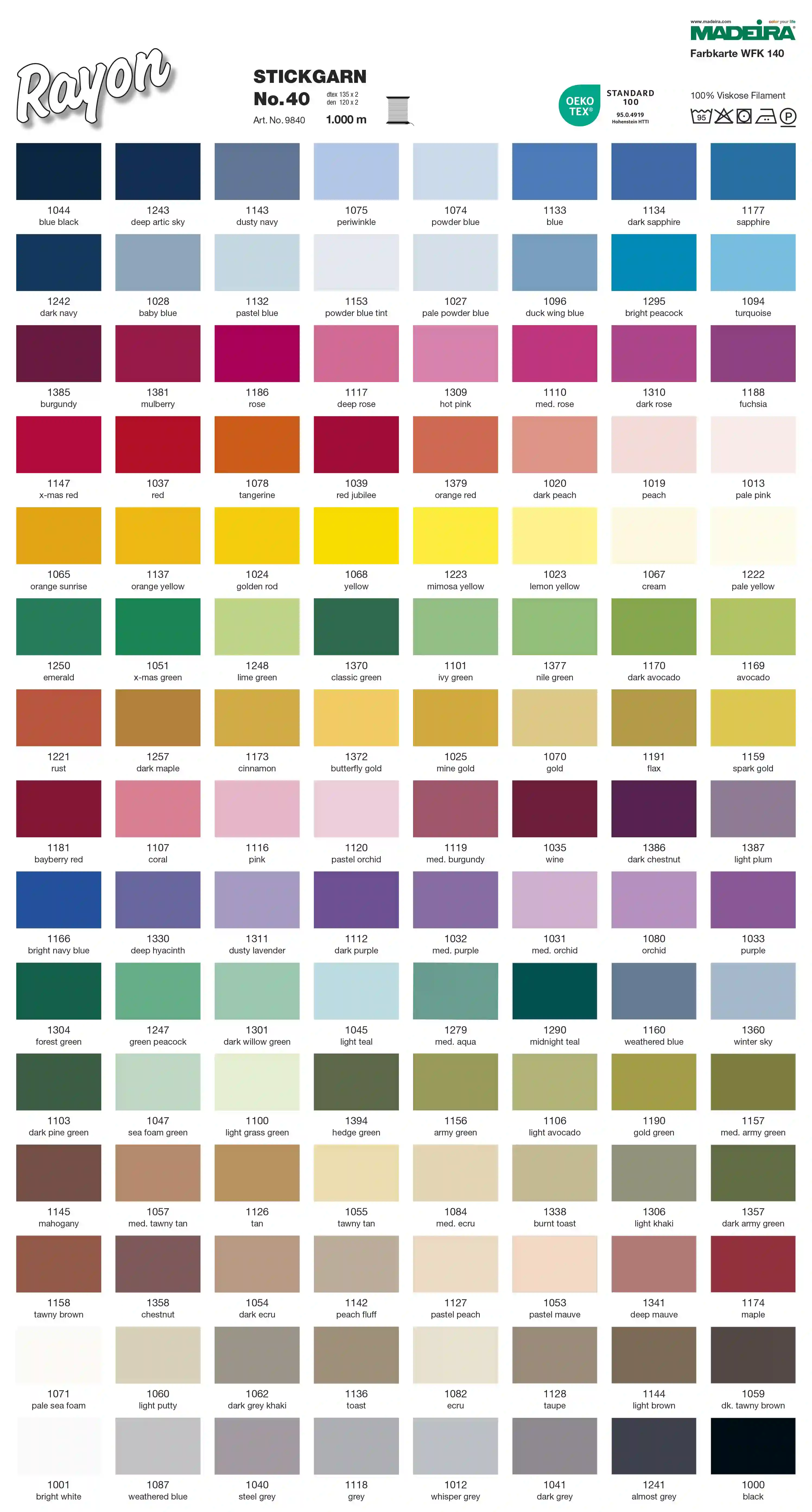 Produktinformationen "Madeira Stickgarn Rayon 40 - 1.000m Spule 120 Farben "