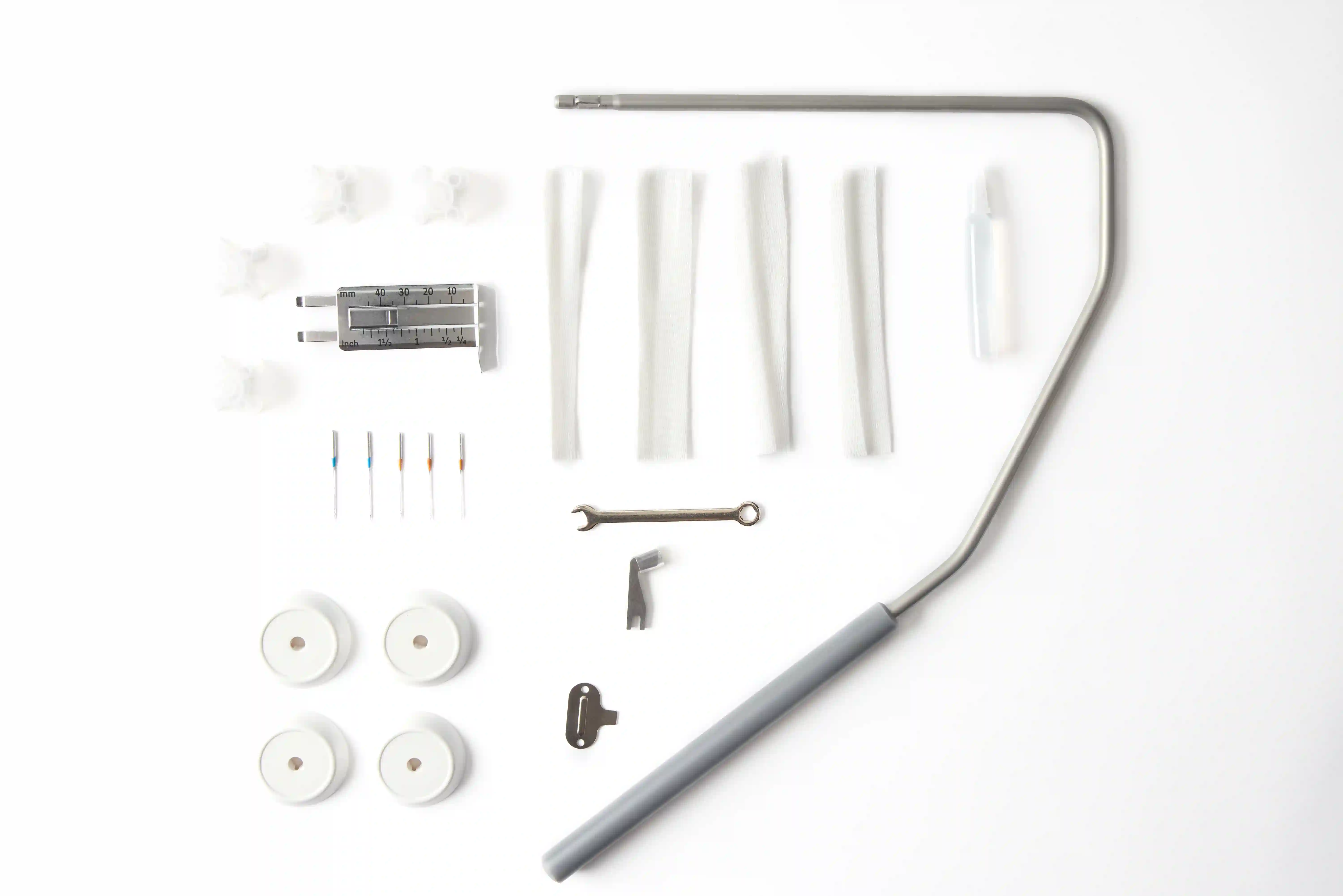 So hast du deine wichtigsten Werkzeuge zum Nähen immer griffbereit. Egal ob Pinzette, Schraubendreher, Reinigungsbürste, Obergreifer-Konverter und Nadeln,