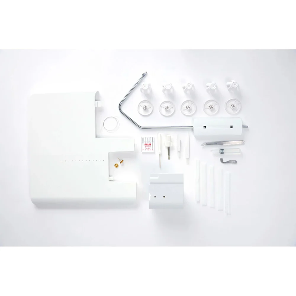 Die Möglichkeit zum Nähen mit 5/4/3/2 Fäden bietet 23 verschiedene Stichoptionen für eine Vielzahl von Nähtechniken.