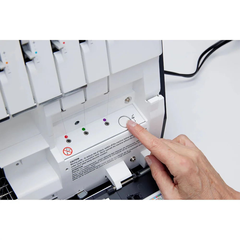 Fadenführungen ermöglichen die Verwendung von Standard-Overlockfäden oder schwereren dekorativen Fäden mit Leichtigkeit.