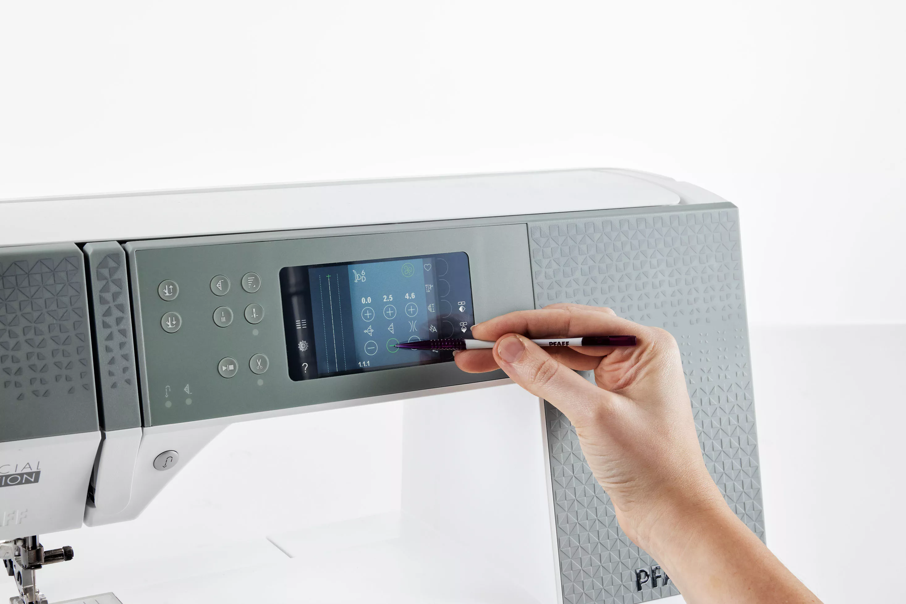 Stiche werden in Originalgröße auf dem Farb-Touchscreen angezeigt. Sie erhalten alle wichtigen Informationen zum Stich wie z.B. Stichlänge und Stichbreite.