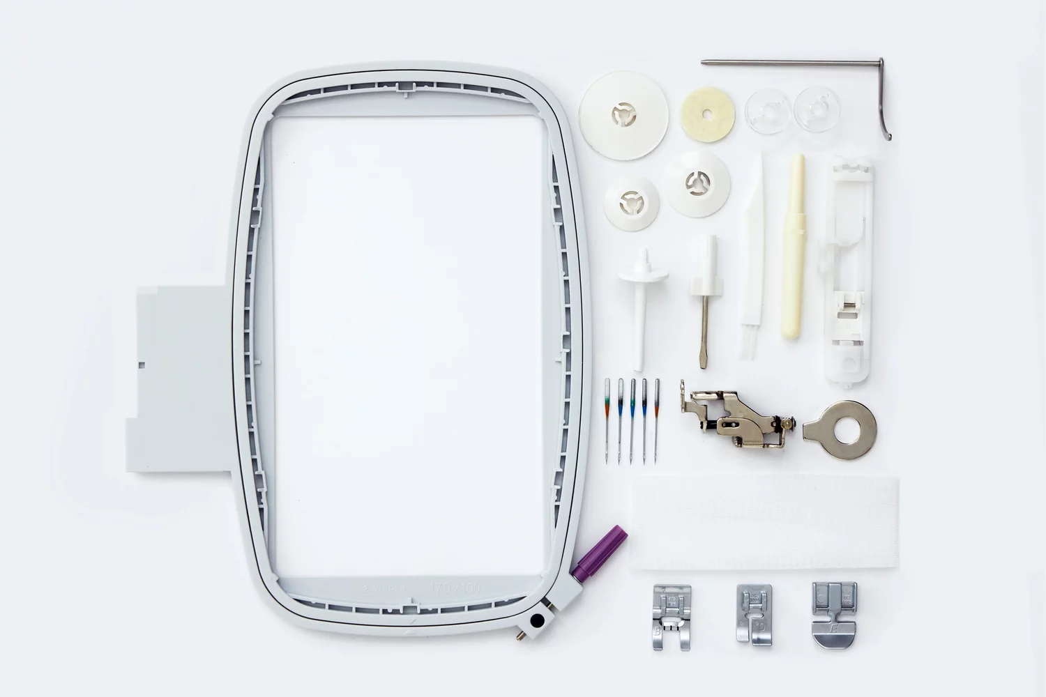Stickfläche 170 mm x 100 mm: So macht Sticken Spaß. Die Stickrahmenfläche eignet sich für kleine und größere Designs. Der Stickrahmen mit hoher Stickperformance, ist serienmäßig im Lieferumfang enthalten.